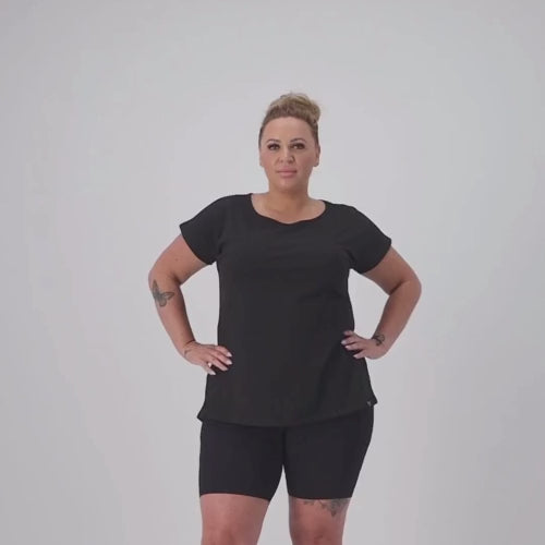 This Core Cap Sleeved Tee provides more room around the mid-section compared to our Core Tee and our Core Muscle top. The breathable lightweight cotton has elastane to accommodate ladies who need that little bit of extra stretch. Moisture wicking technology draws sweat away from your skin for fast-drying comfort.
